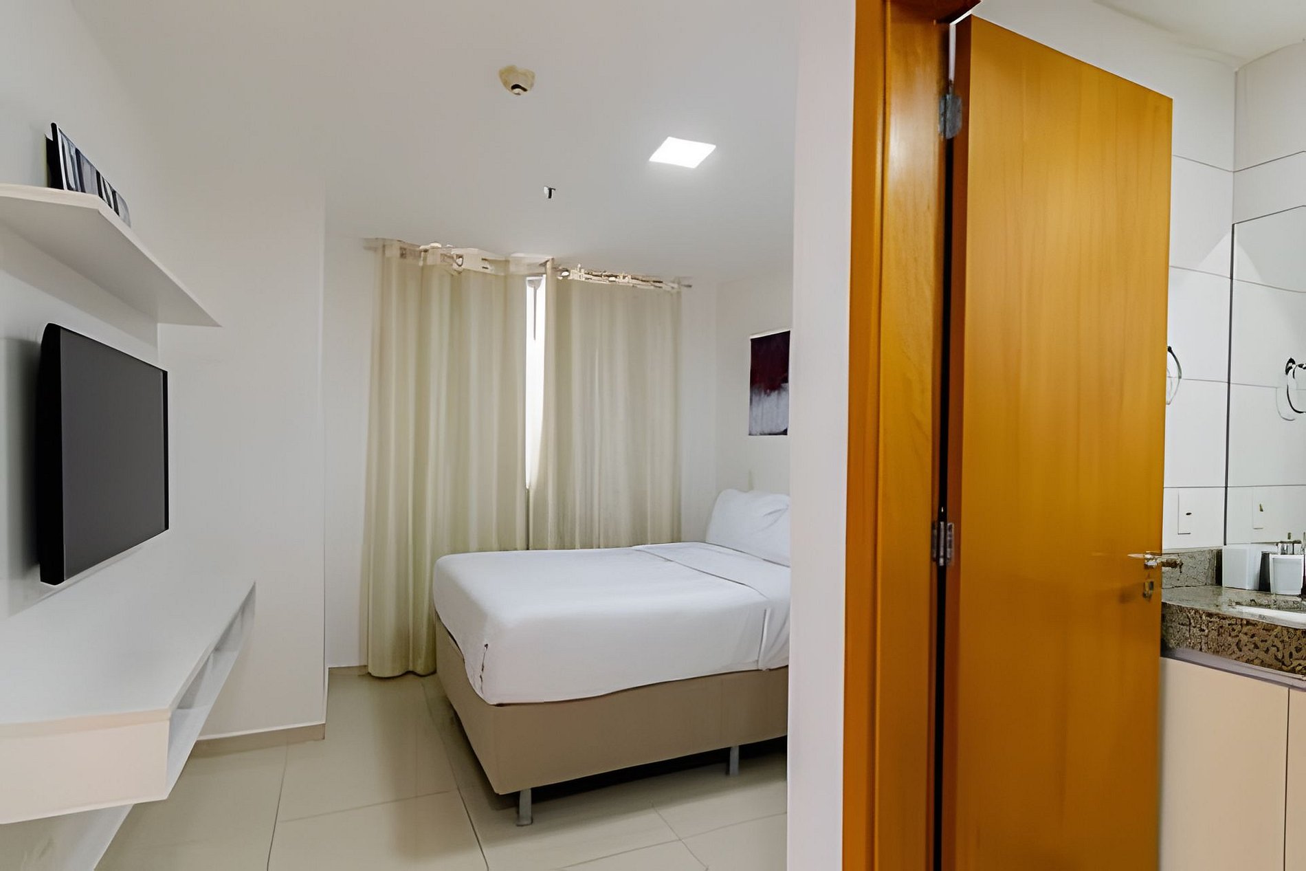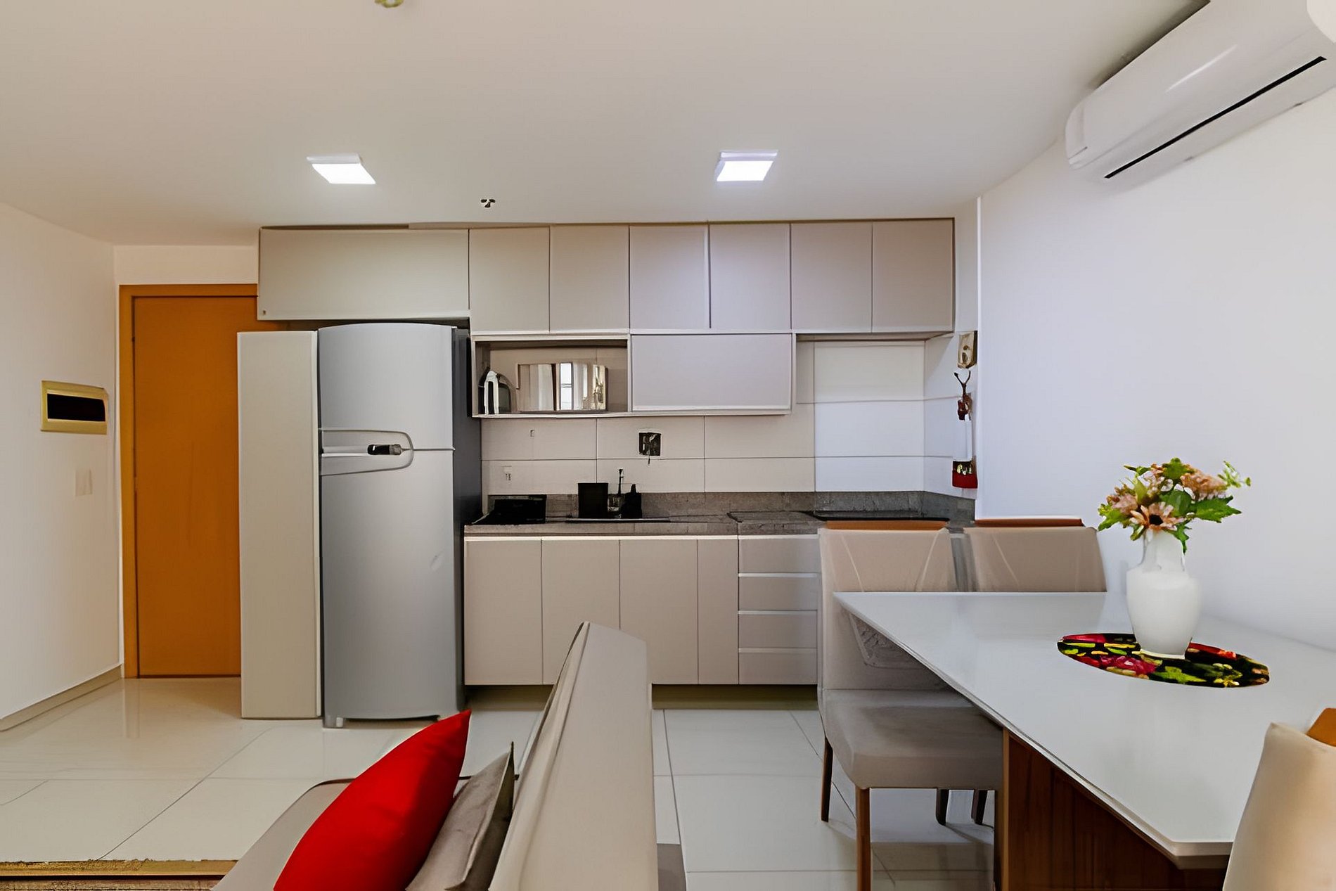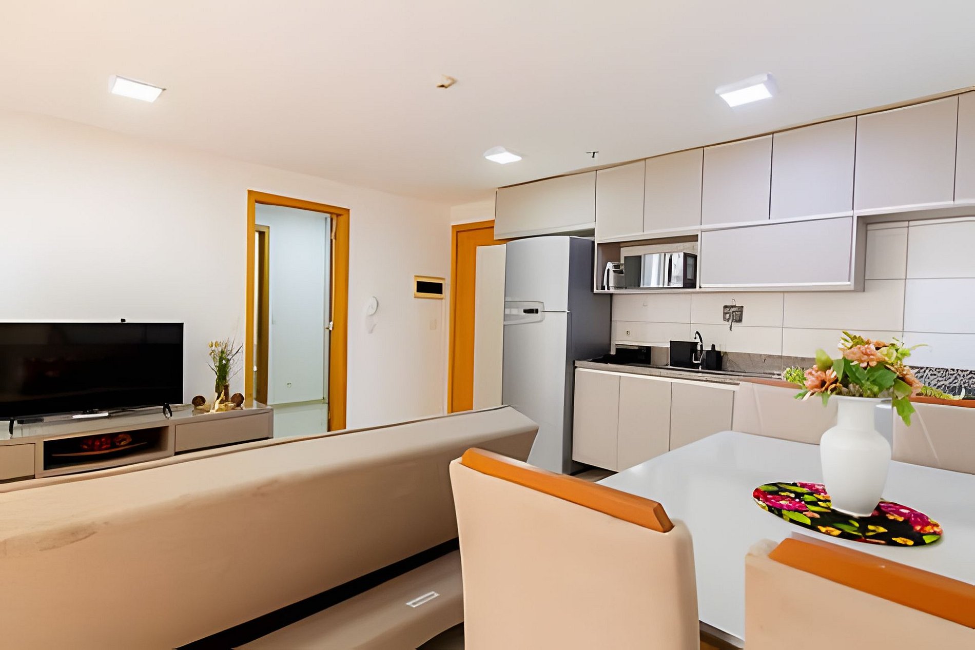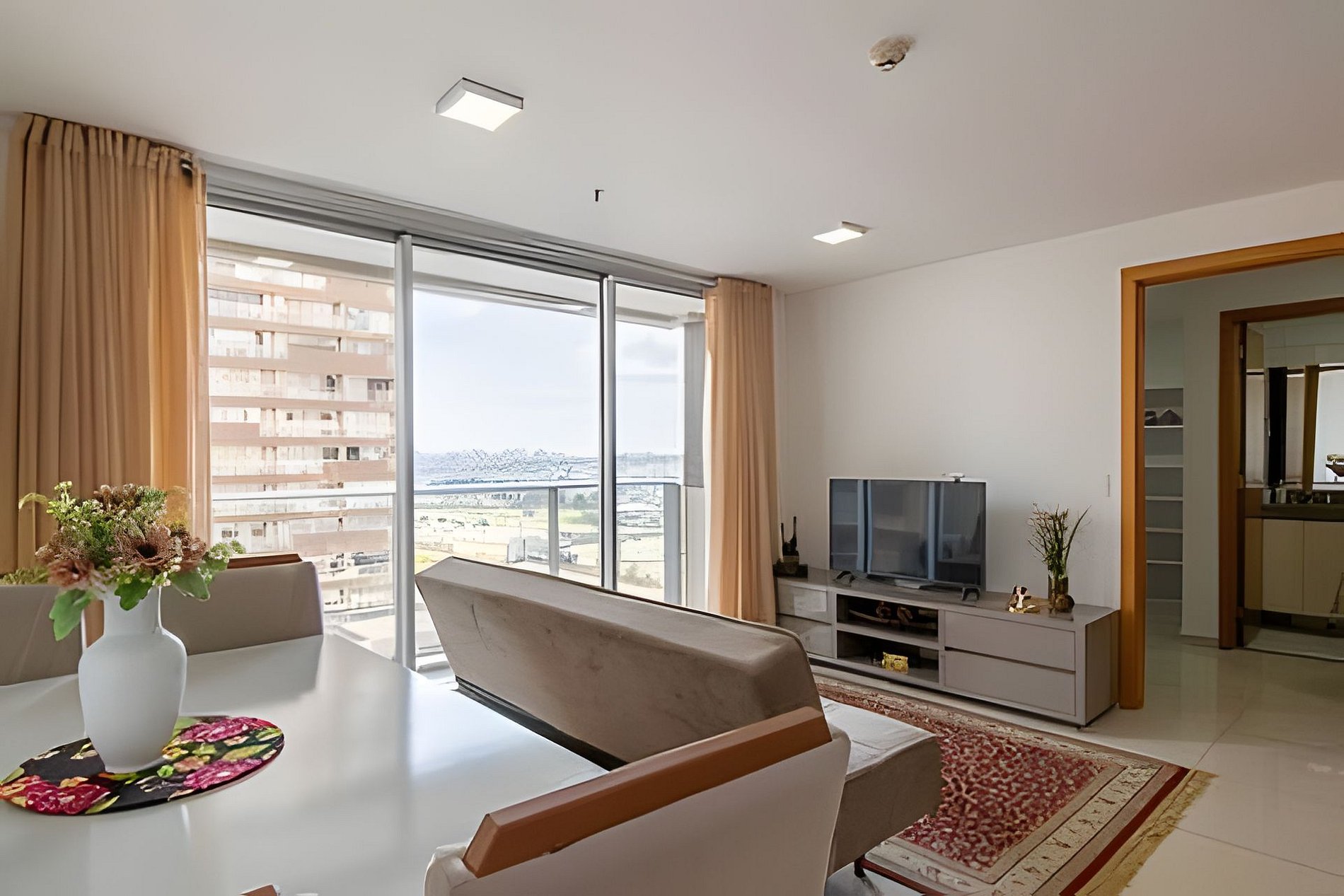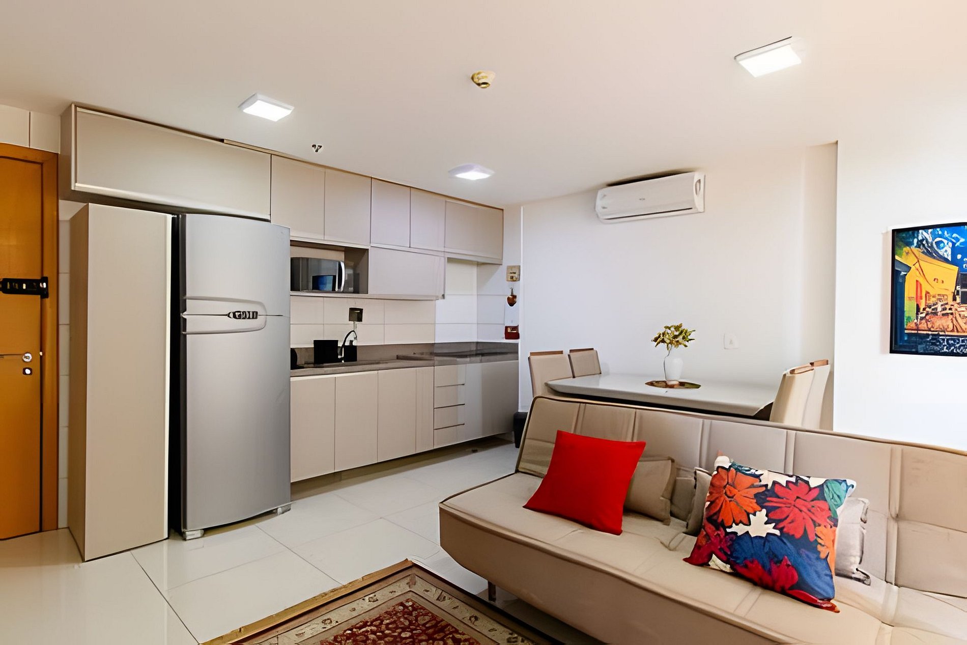 Apartamento com excelente localização, dentro do Shopping DF Plaza, que possui muitas opções de alimentação, lazer e a comodidade de um Carrefour anexo ao complexo. Apartamento extremamente amplo, com uma cama extremamente confortável. Atenção: O espaço dispõe de ar condicionado somente na Sala. Não possui ar condicionado no quarto.