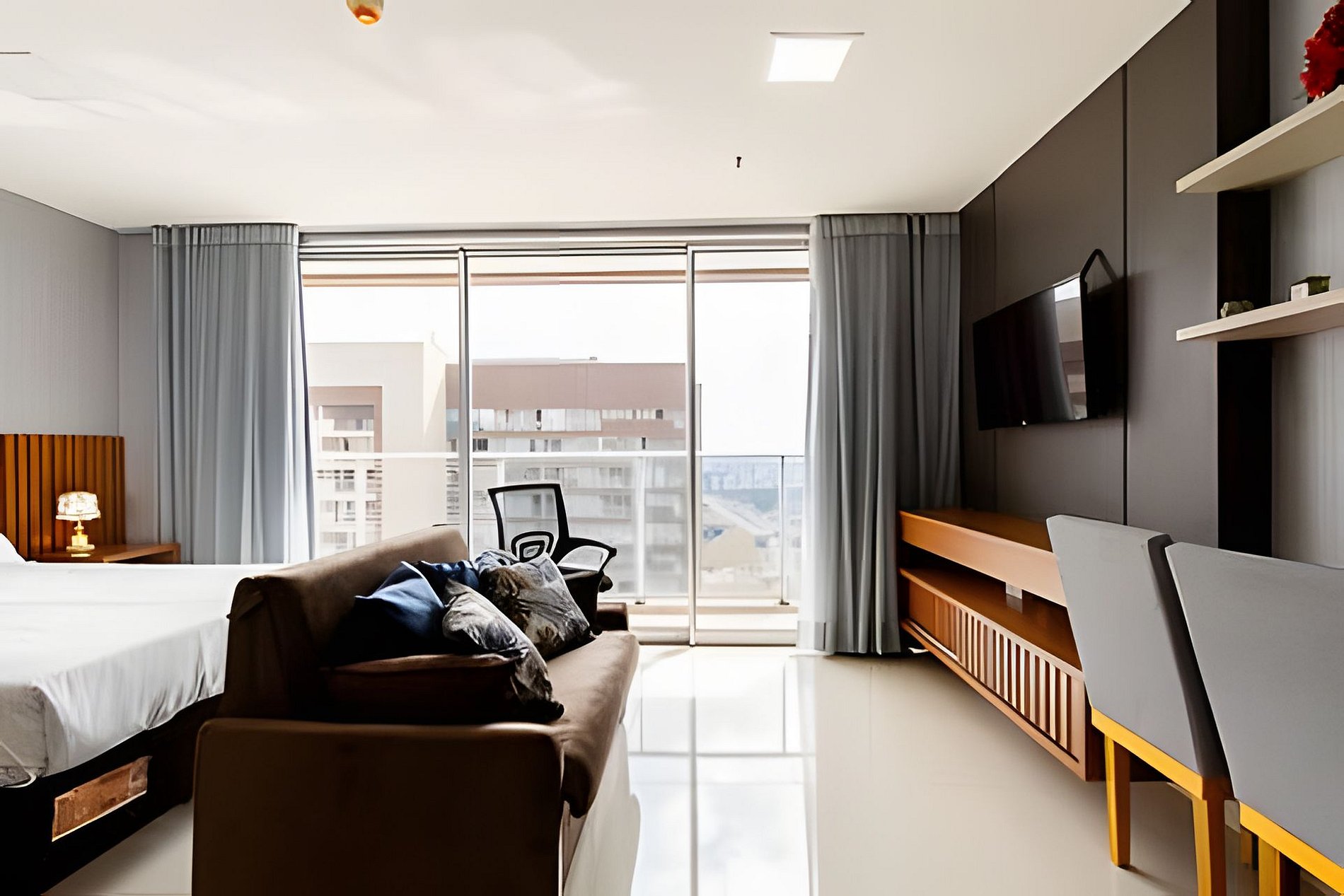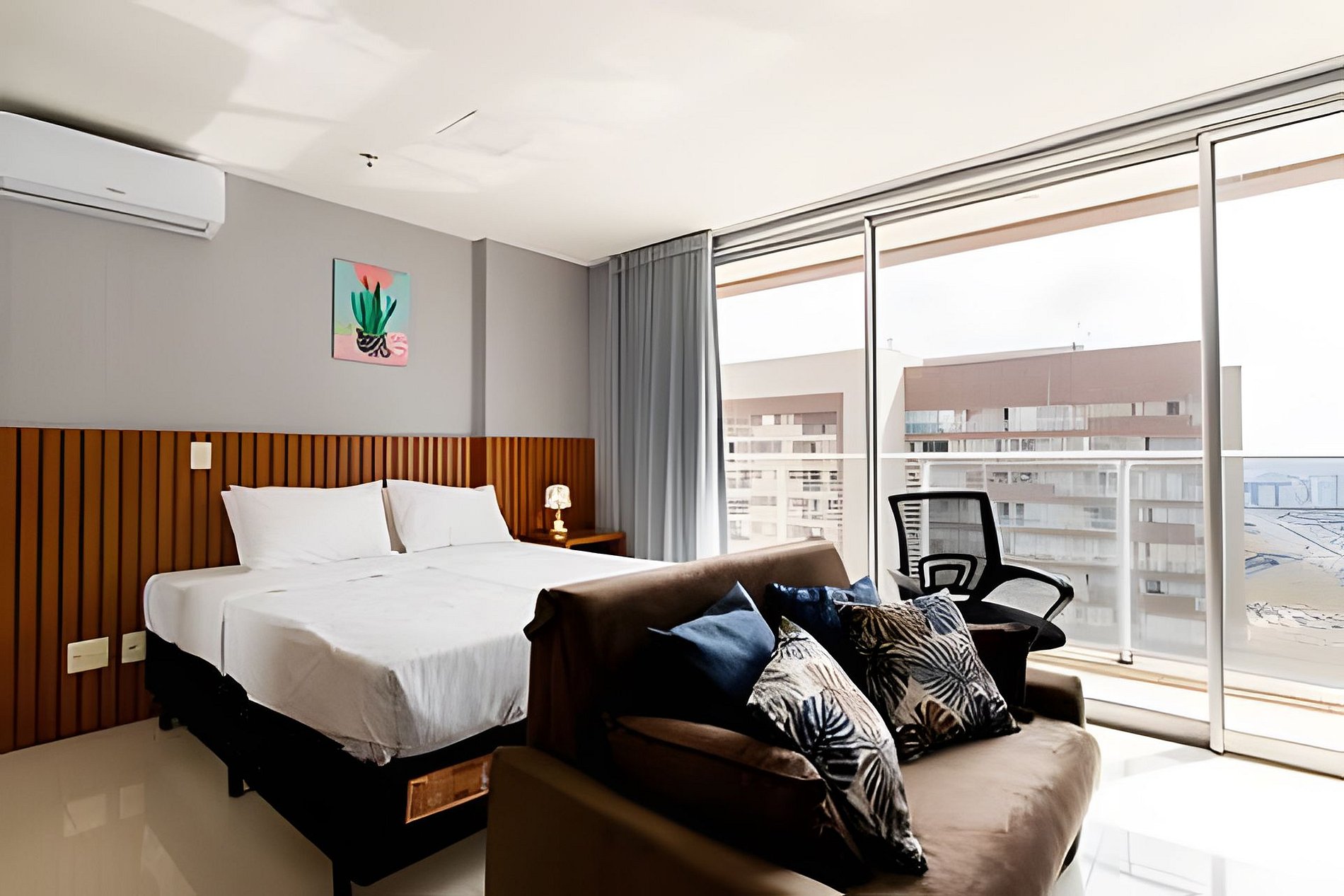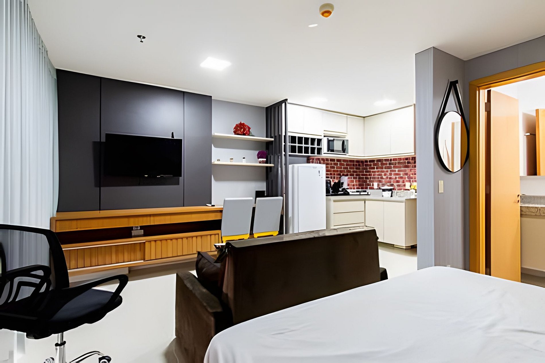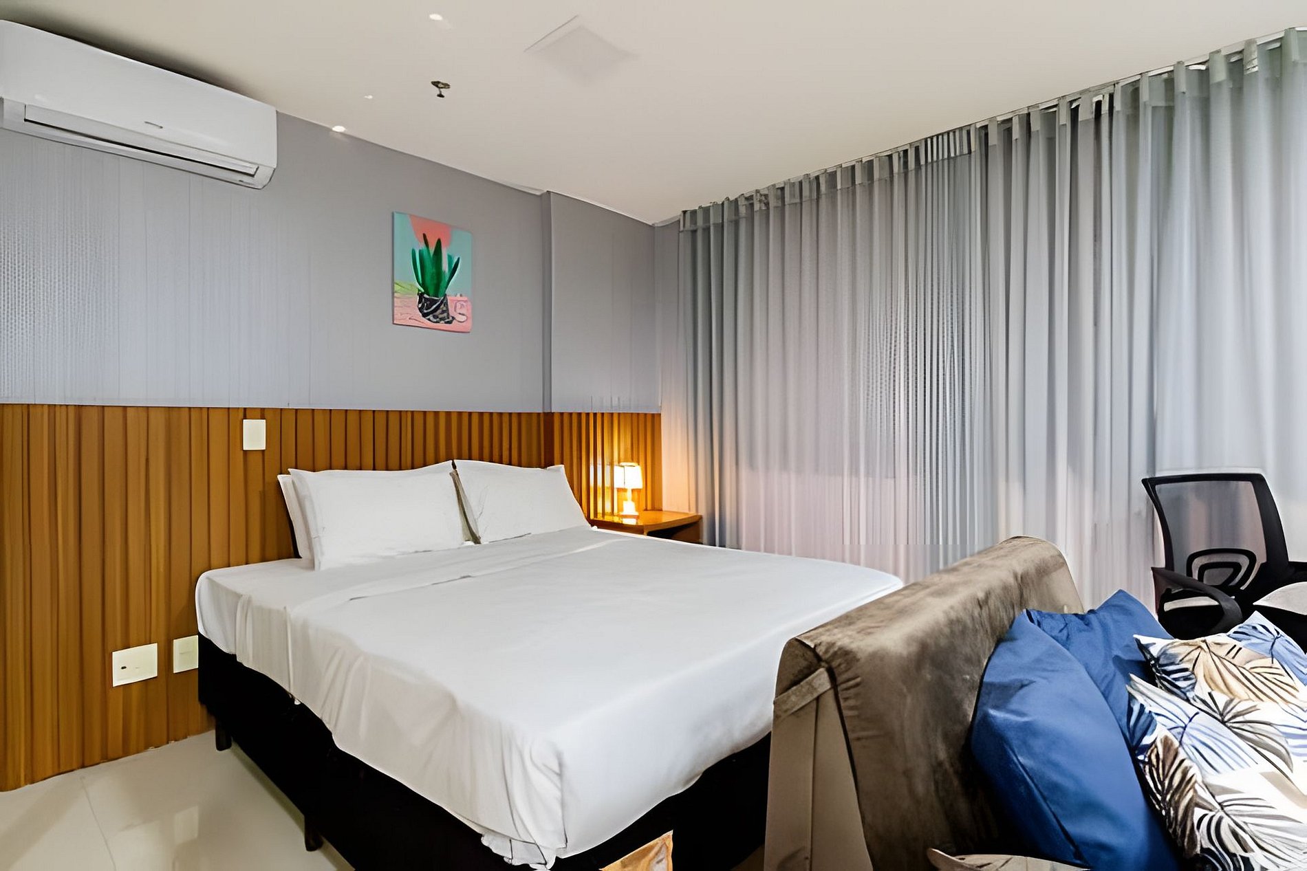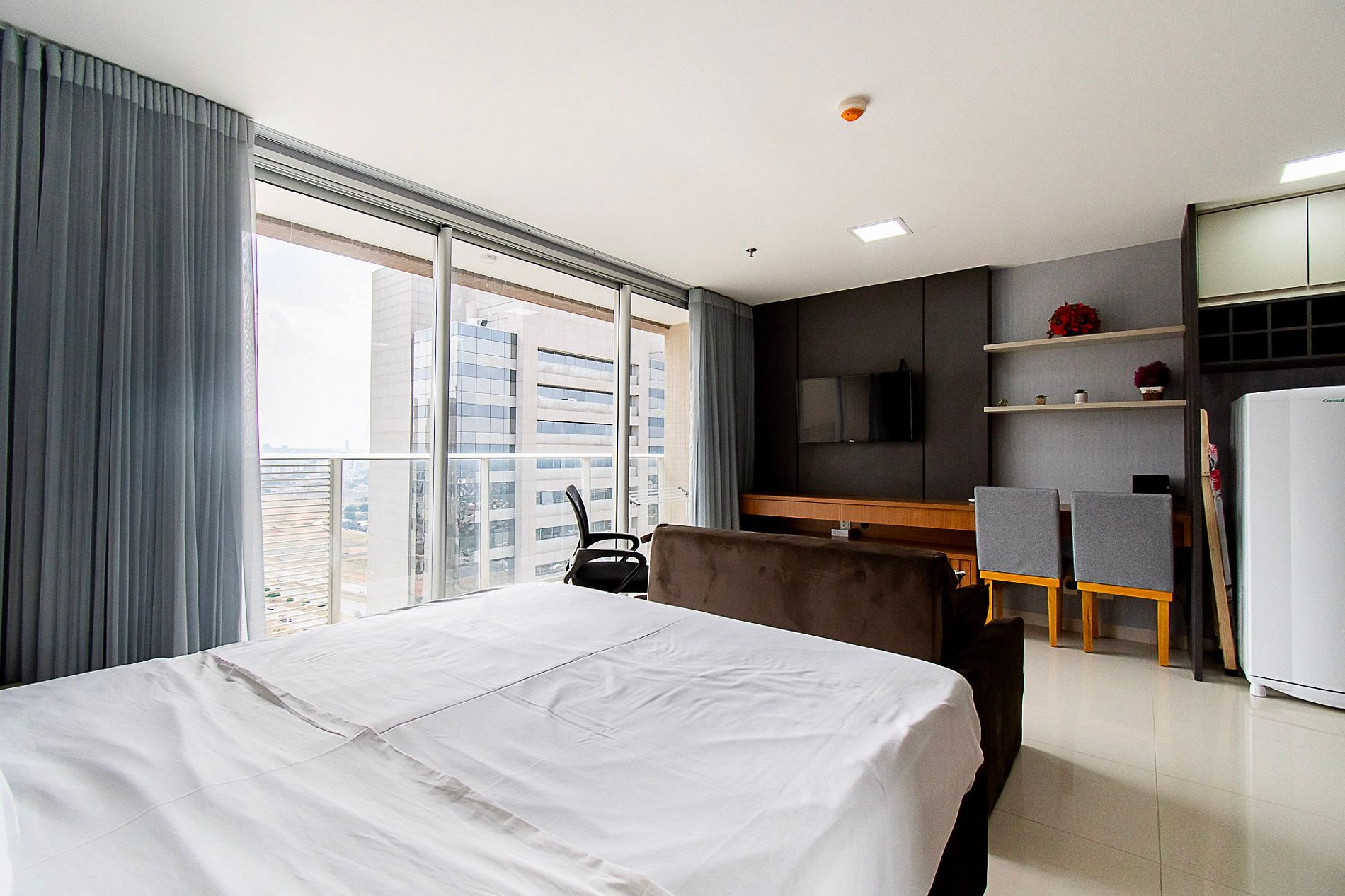 Confortável, estiloso e funcional apartamento no DF Plaza Shopping, em Águas Claras. Apartamento com uma cama de casal e um sofá cama, reformado pensando em proporcionar uma experiência inigualável. O local dispõe ainda de uma boa estrutura com acesso facilitado a bons restaurantes, mercado e acesso rápido a via de grande circulação com ligação para o centro de Brasília, além da proximidade da estação do metrô.