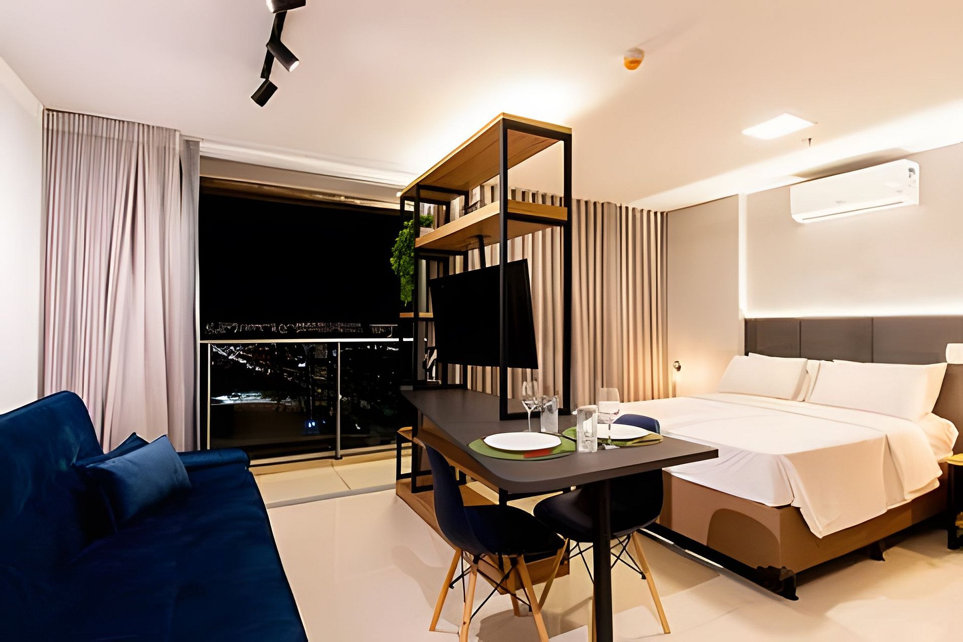 Incrível apartamento no design industrial, localizado no Shopping DF Plaza, em Águas Claras. Todo reformado pensando no conforto dos nossos hóspedes, para melhor acolhê-lo e proporcionar uma estadia agradável, tranquila e com diversas opções de lazer. O espaço dispõe de uma confortável cama de casal e um sofá cama, além de uma cozinha equipada para preparo rápido de refeições. Além disso o complexo possui diversas opções de alimentação, como Coco Bambu, Outback Steakhouse e outros renomados.