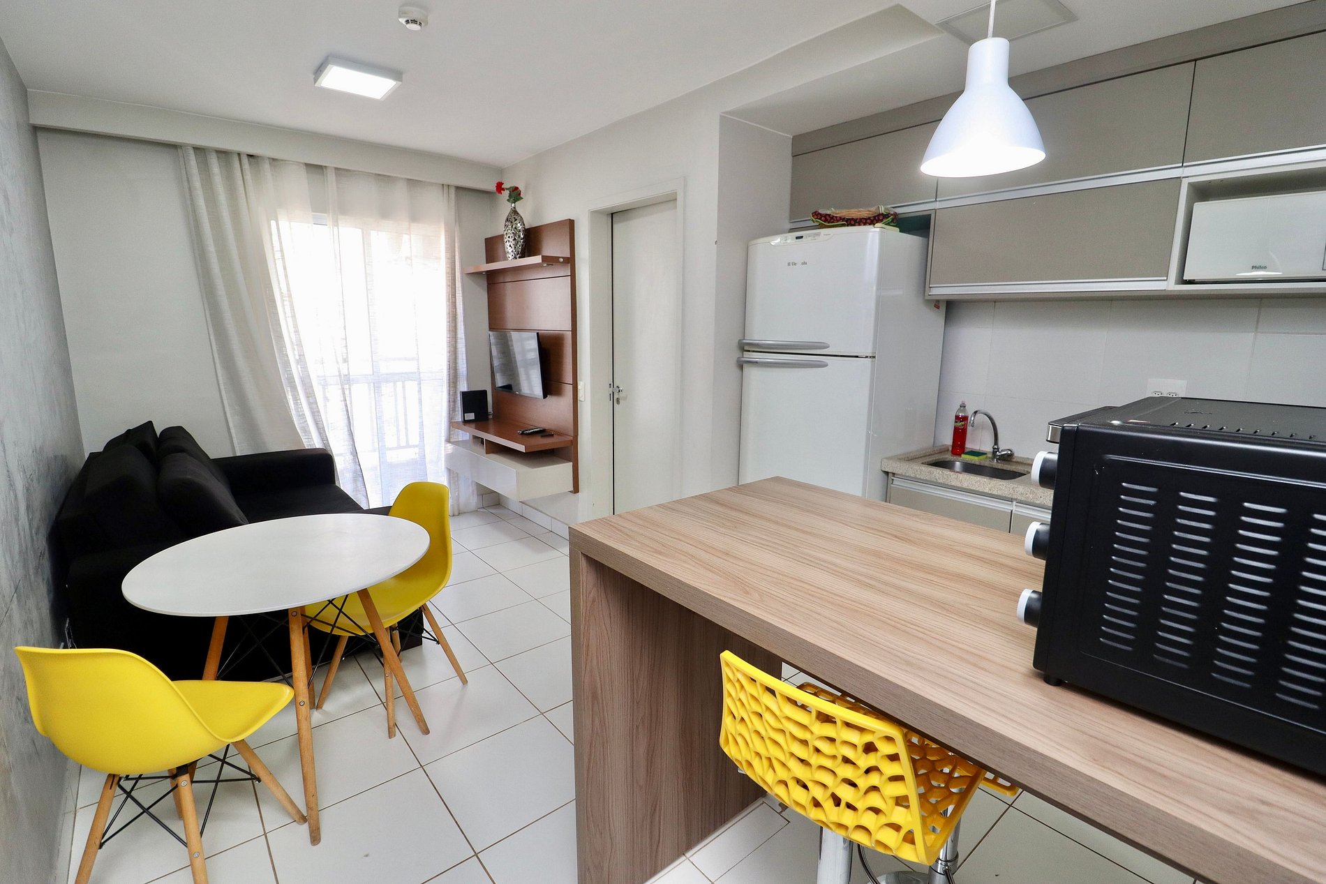 Apartamento Comfort plus!! Todo equipado para seu conforto e comodidade. Enxoval de cama e banho limpinho e completo, cozinha com muitas opções de utensílios para seu preparo diário, bancada de estudo no quarto. Uma varanda com mesinha para seu café da tarde. Tudo pensado e planejado para você.