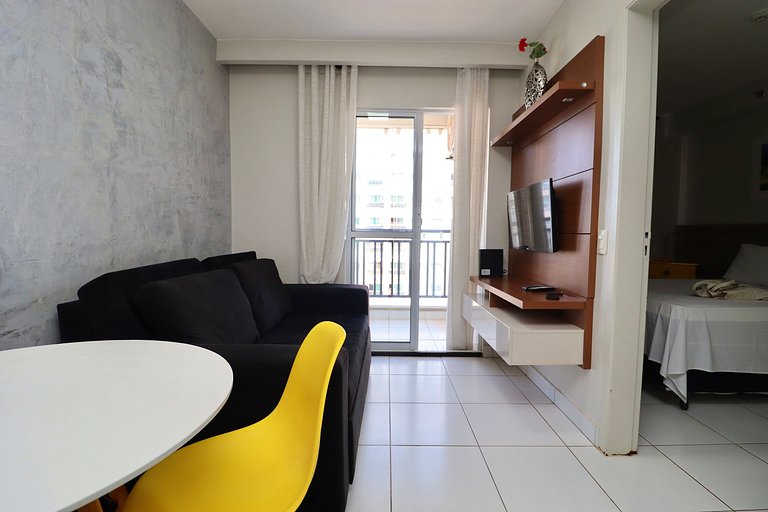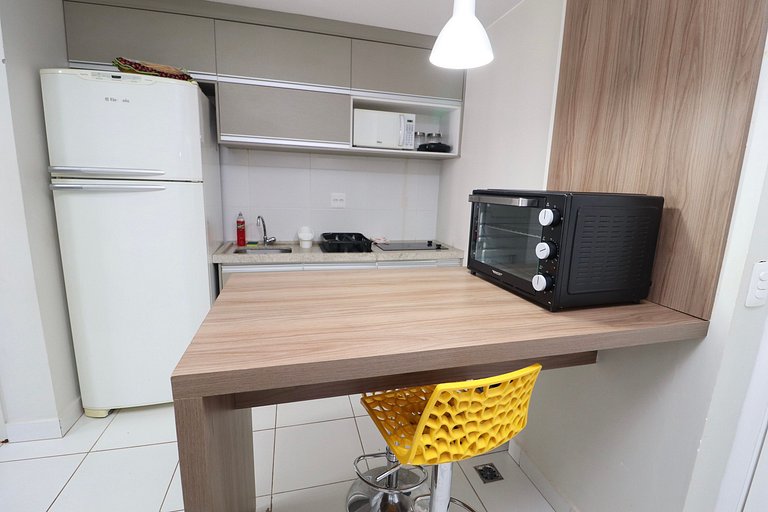 Apartamento projetado para proporcionar uma estadia excepcional, equipado com uma smart TV por assinatura, rápida internet de 35MB e uma cozinha completa.