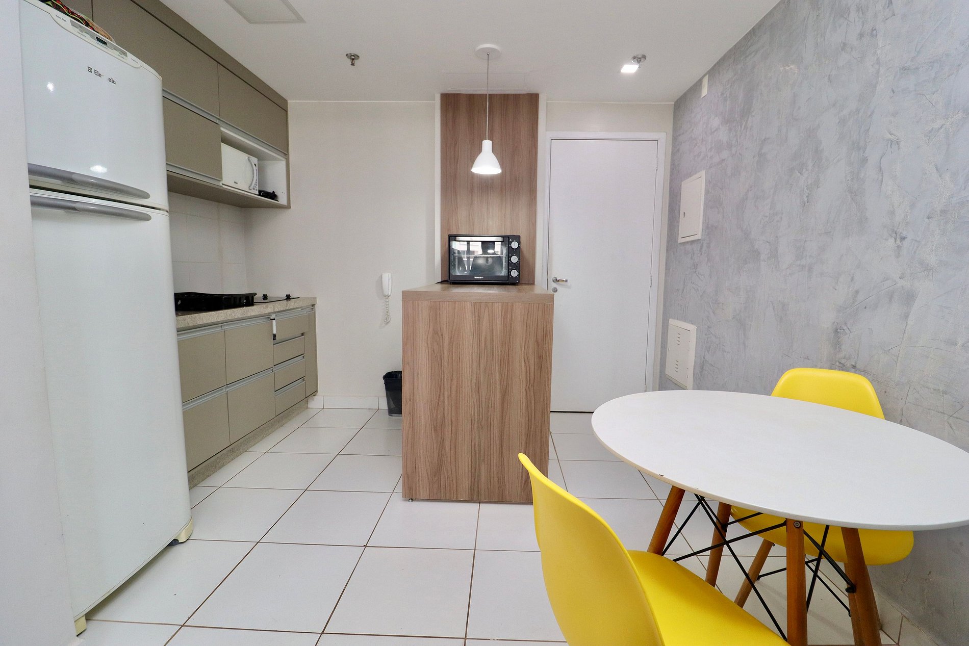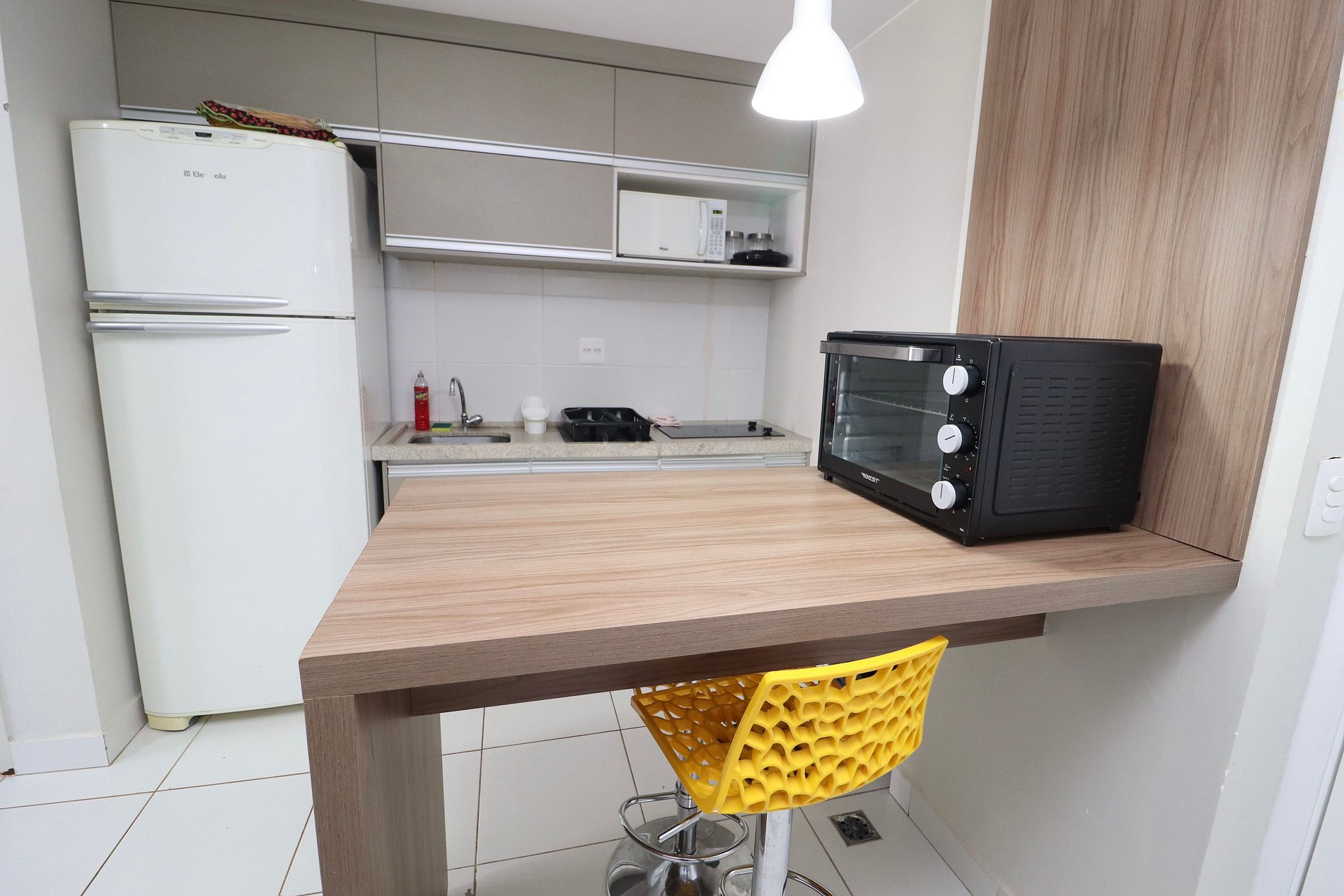 Apartamento Comfort plus!! Todo equipado para seu conforto e comodidade. Enxoval de cama e banho limpinho e completo, cozinha com muitas opções de utensílios para seu preparo diário, bancada de estudo no quarto. Uma varanda com mesinha para seu café da tarde. Tudo pensado e planejado para você.