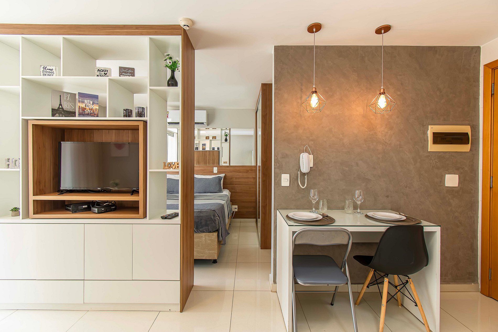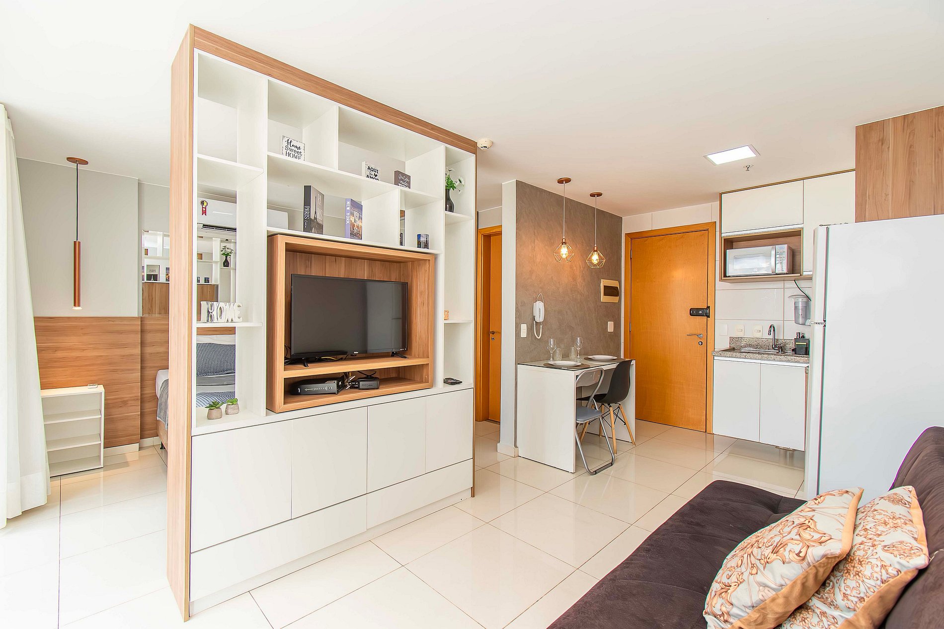 Ótimo apartamento localizado dentro do Shopping DF Plaza. O ponto alto da estadia é a possibilidade de desfrutar da estrutura que o complexo oferece, com restaurantes de qualidade. Caso queira pode utilizar o próprio apartamento para preparar suas refeições, com uma cozinha completa. O apartamento dispõe ainda de uma rápida internet, com 120 mb e uma vaga de garagem sem custo extra.