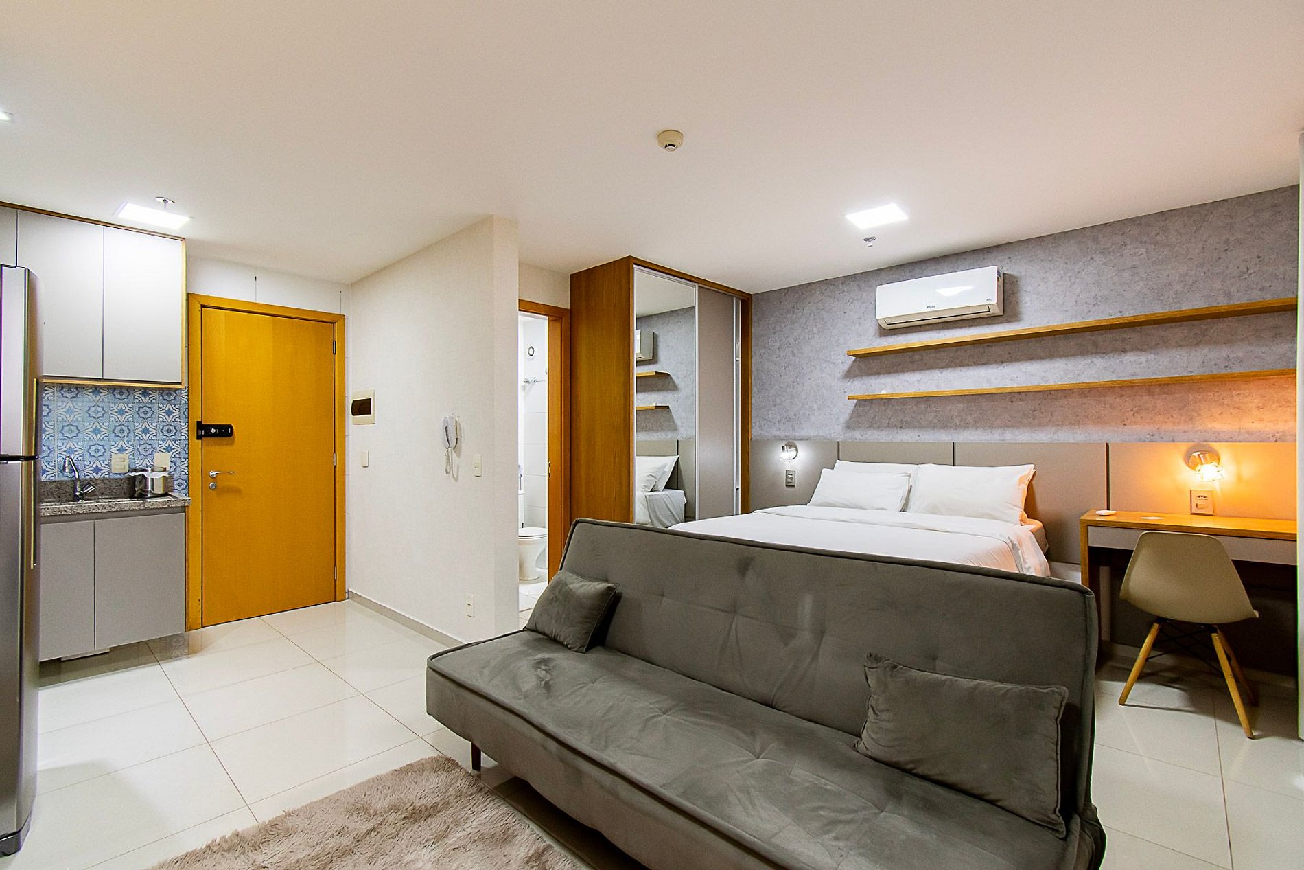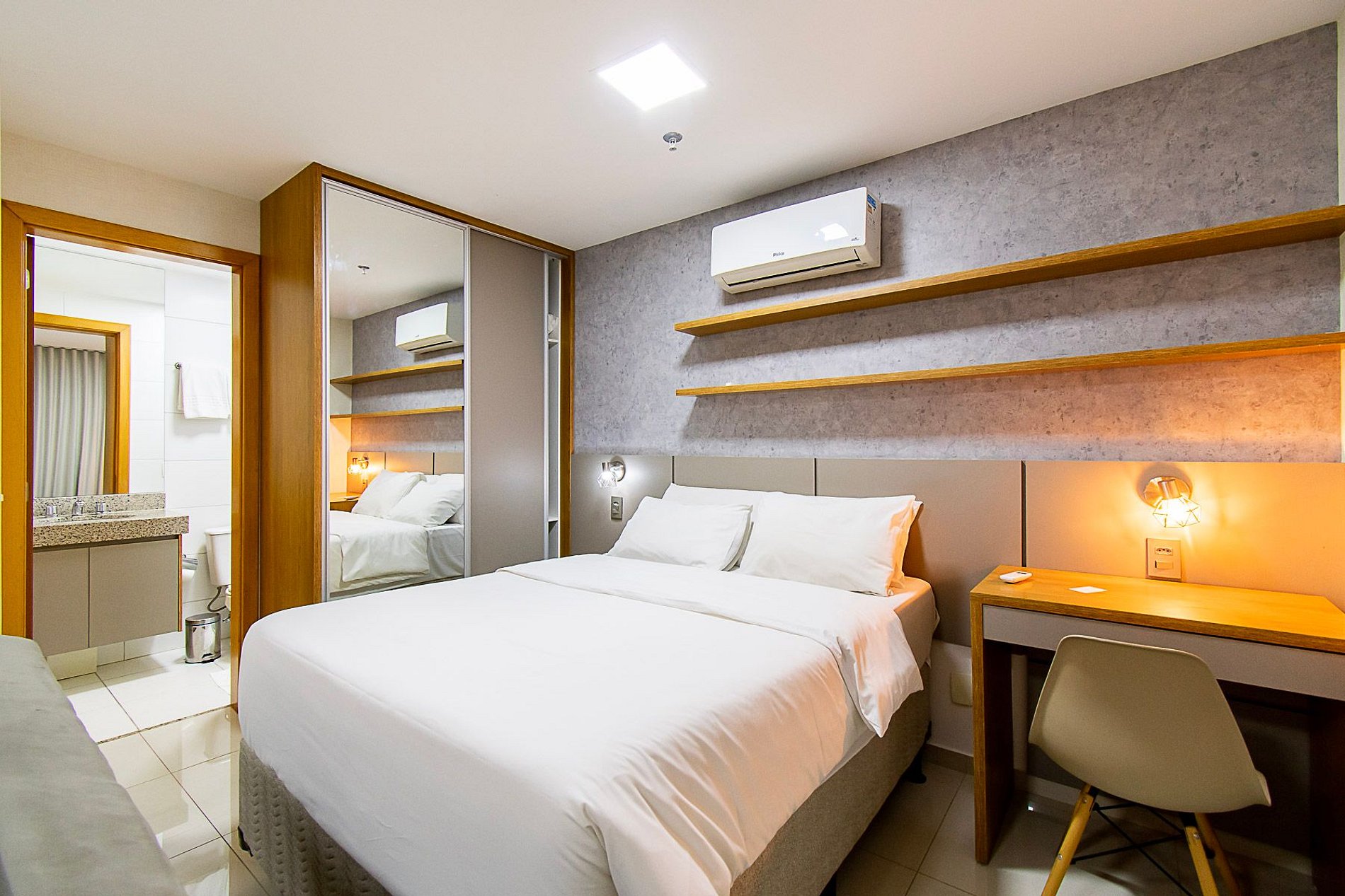Loft extremamente confortável e aconchegante reformado e preparado exclusivamente pensando na acomodação dos hóspedes que vêm à cidade para trabalho ou lazer. Possui uma cama bastante confortável, uma TV smart que possibilita assistir seus streamings e uma cozinha compacta mas bastante equipada para auxiliar nas sua refeições rápidas. O apartamento fica localizado dentro do complexo DF Century Plaza, com um shopping com diversas opções de culinária, dentre elas o Coco Bambu e o Outback.