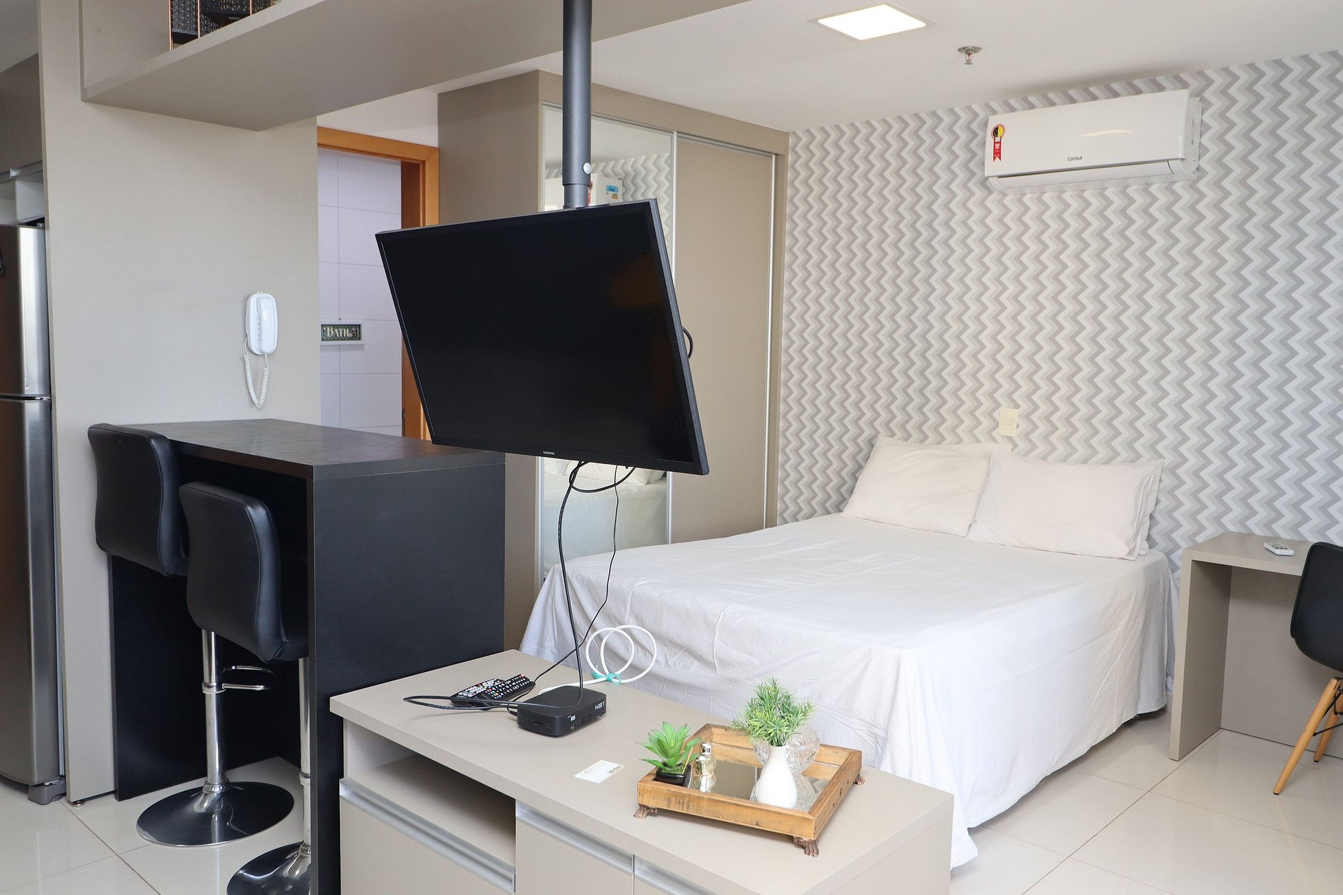 Para pessoas que apreciam um ambiente moderno , confortável , luxuoso e completo. Apto bem iluminado , arejado e com uma linda vista . Localizado no shopping DF Plaza com varias opções de gastronomia (Coco Bambu, outback), lojas e supermercado. Para pequenas ou longas estadias , aqui é o lugar ideal para você se hospedar. Ambiente com vigilância 24 horas e garagem.