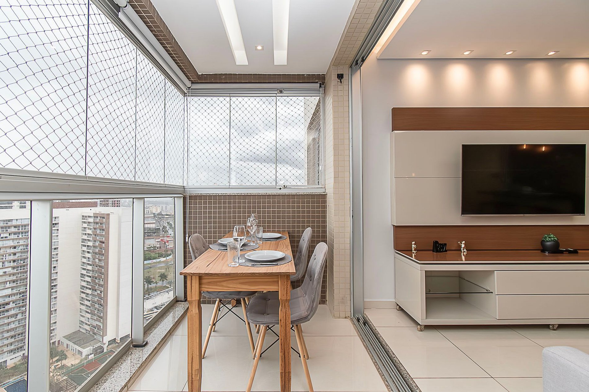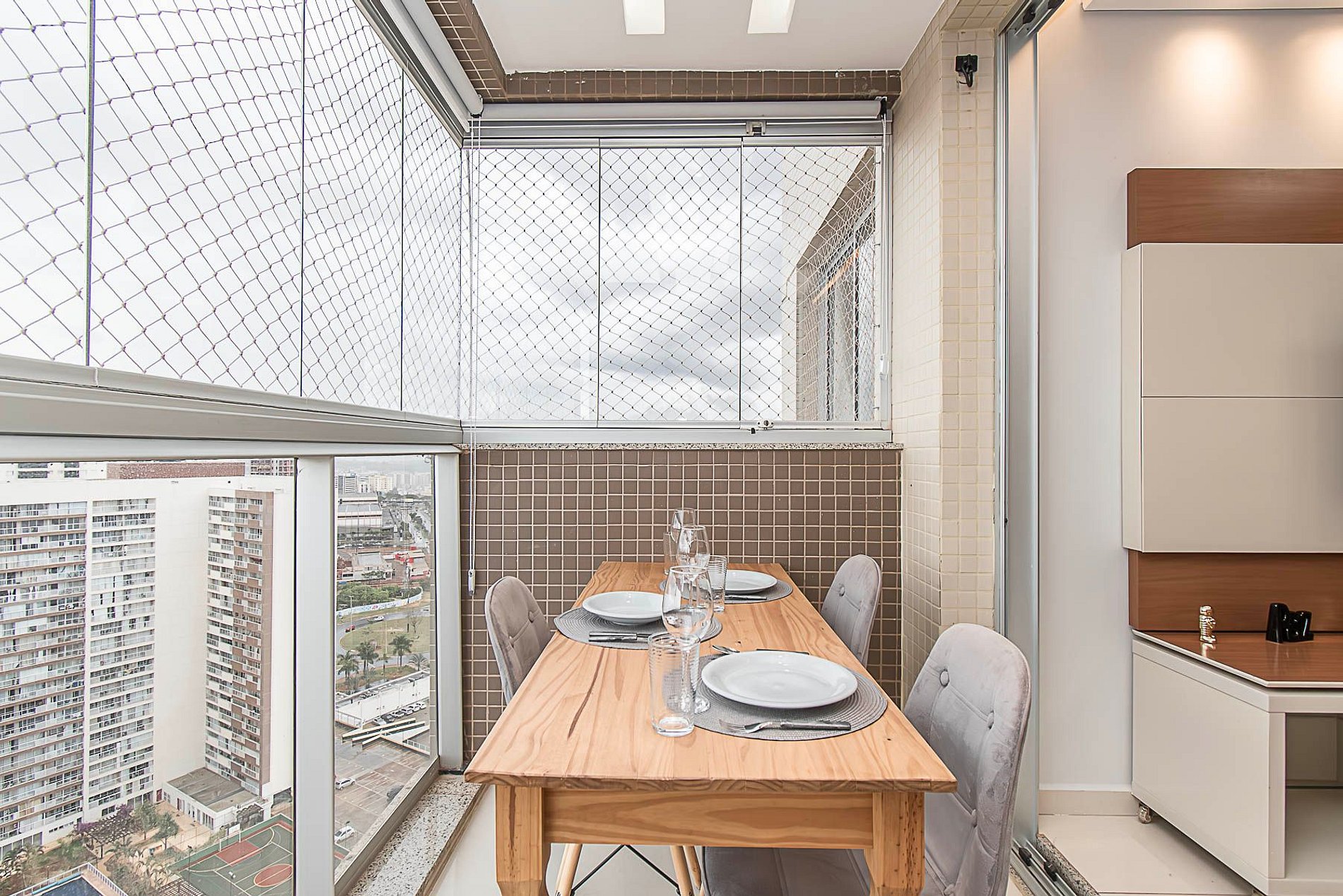 Então, somente ligue o ar condicionado quando estiver no apartamento. Para utilizá-lo é necessário abrir a janela dentro do armário na sala, que fica a condensadora, caso utilize com a janela fechada a condensadora pode esquentar e queimar.