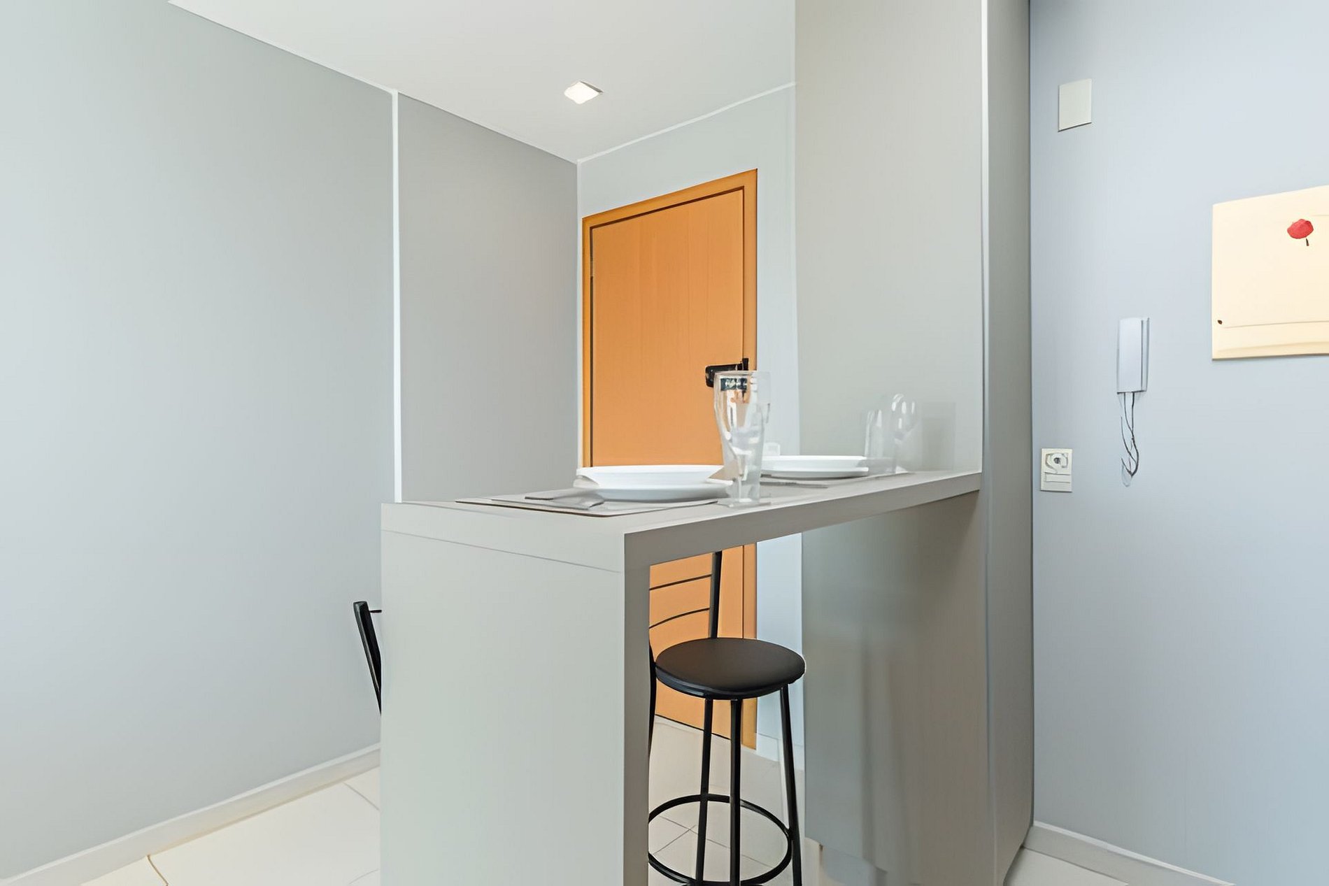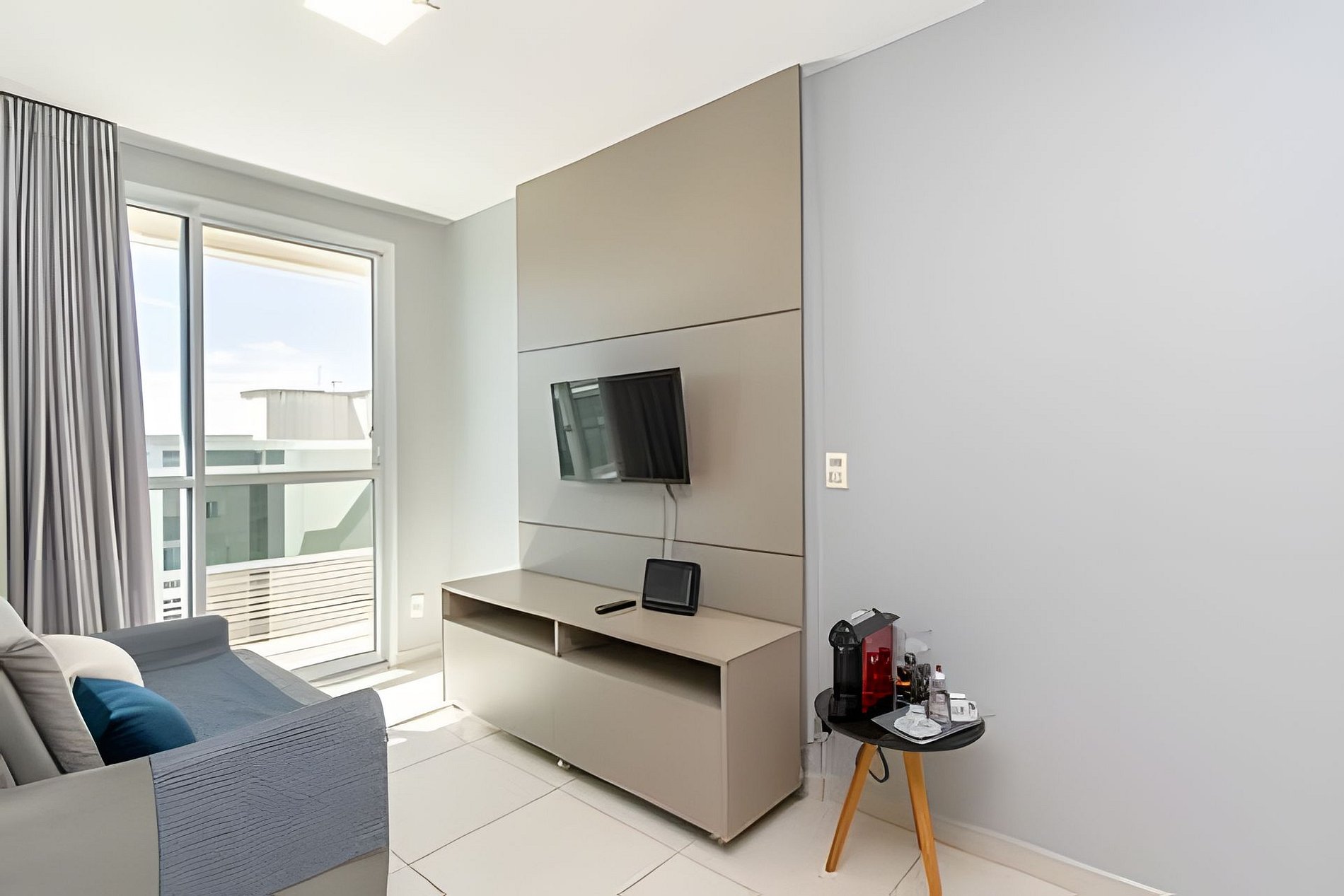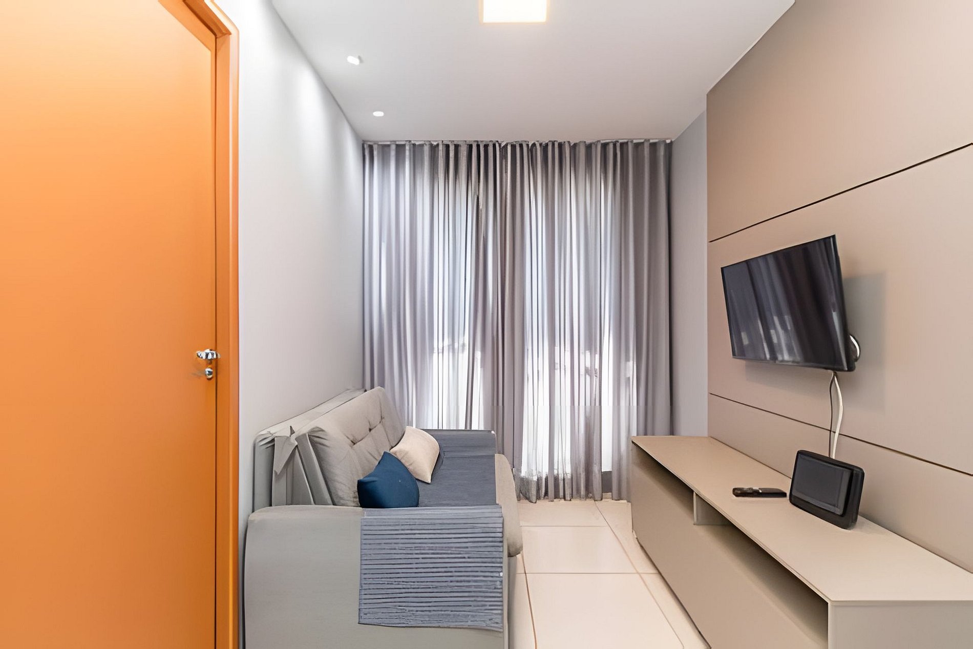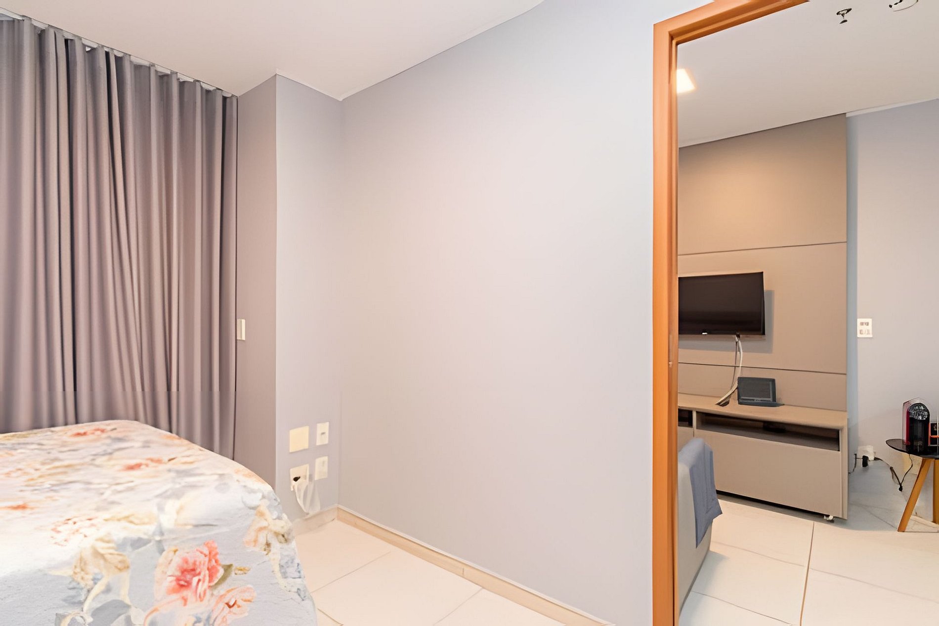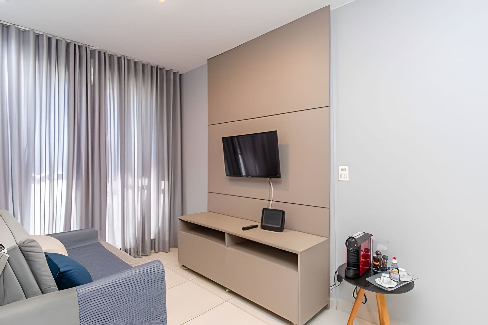 Apartamento ideal para um casal, com uma cama de casal extremamente confortável, ar condicionado no quarto e uma internet veloz.